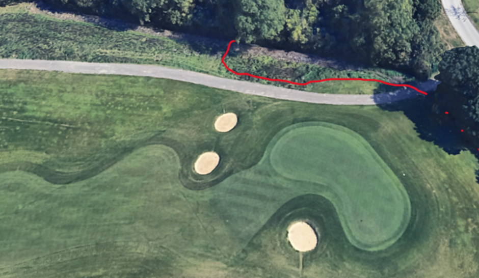 The road crossing Hole 3 – If a ball is at rest within 2 club-lengths of the road (on the Teeing Area side ONLY), the player must take relief under Rule 16.1. The reference point for this relief will be the nearest point to the ball, 2 club-lengths from the road.