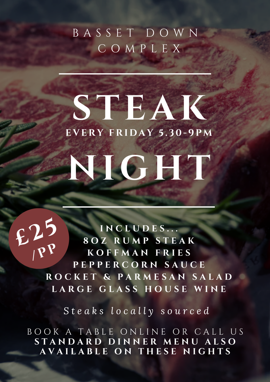 Friday evenings just got even better here at Basset Down! We’re delighted to introduce our brand-new Steak Night offer, available every Friday from 5:30–9:00pm in the restaurant.